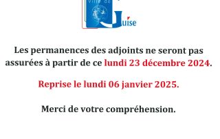 Information – Permanences des adjoints du 23 décembre 2024 au 05 janvier 2025 Galerie Information – Permanences des adjoints du 23 décembre 2024 au 05 janvier 2025 Information Information – Permanences des adjoints du 23 décembre 2024 au 05 janvier 2025ana26082024-12-20T14:22:39+01:0020 décembre 2024|Commentaires fermés sur Information – Permanences des adjoints du 23 décembre 2024 au 05 janvier 2025Read More