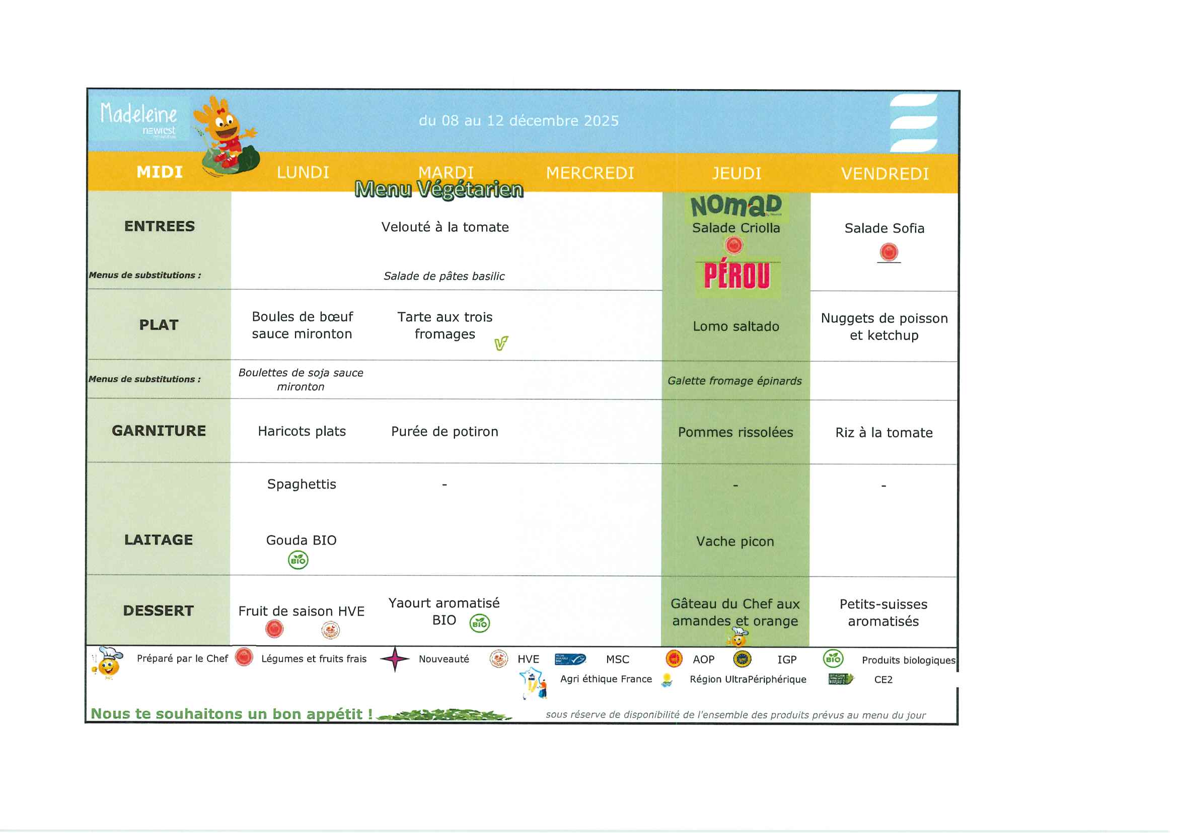 Scolaire – Menu de la cantine du 08 au 12 décembre 2025 Galerie Scolaire – Menu de la cantine du 08 au 12 décembre 2025 SCOLAIRE Scolaire – Menu de la cantine du 08 au 12 décembre 2025Par ana2608|2025-10-13T15:15:12+02:0026 novembre 2025|SCOLAIRE|0 commentaire Lire la suite