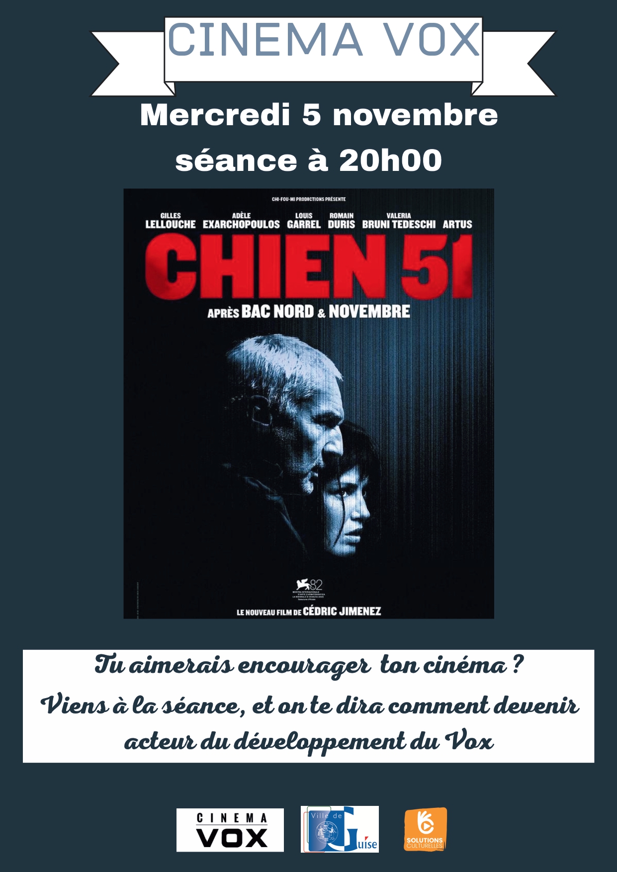 Voir l'image agrandie Cinéma – « Chien 51 », mercredi 05 novembre 2025Par ana2608|2025-10-21T08:49:15+02:0021 octobre 2025|Cinéma|0 commentaireShare This Story, Choose Your Platform!FacebookTwitterRedditLinkedInTumblrPinterestVkEmail À propos de l'auteur : ana2608 Articles similaires Cinéma – Programme du 15 au 28 octobre 2025 Galerie Cinéma – Programme du 15 au 28 octobre 2025 Cinéma – Projection « Entre deux mondes » et escape game – Vendredi 24 octobre 2025 Galerie Cinéma – Projection « Entre deux mondes » et escape game – Vendredi 24 octobre 2025 Cinéma – Programme du 01 octobre au 14 octobre 2025 Galerie Cinéma – Programme du 01 octobre au 14 octobre 2025 Cinéma – Programme du 17 au 30 septembre 2025 Galerie Cinéma – Programme du 17 au 30 septembre 2025 Cinéma – Programme du 03 au 16 septembre 2025 Galerie Cinéma – Programme du 03 au 16 septembre 2025