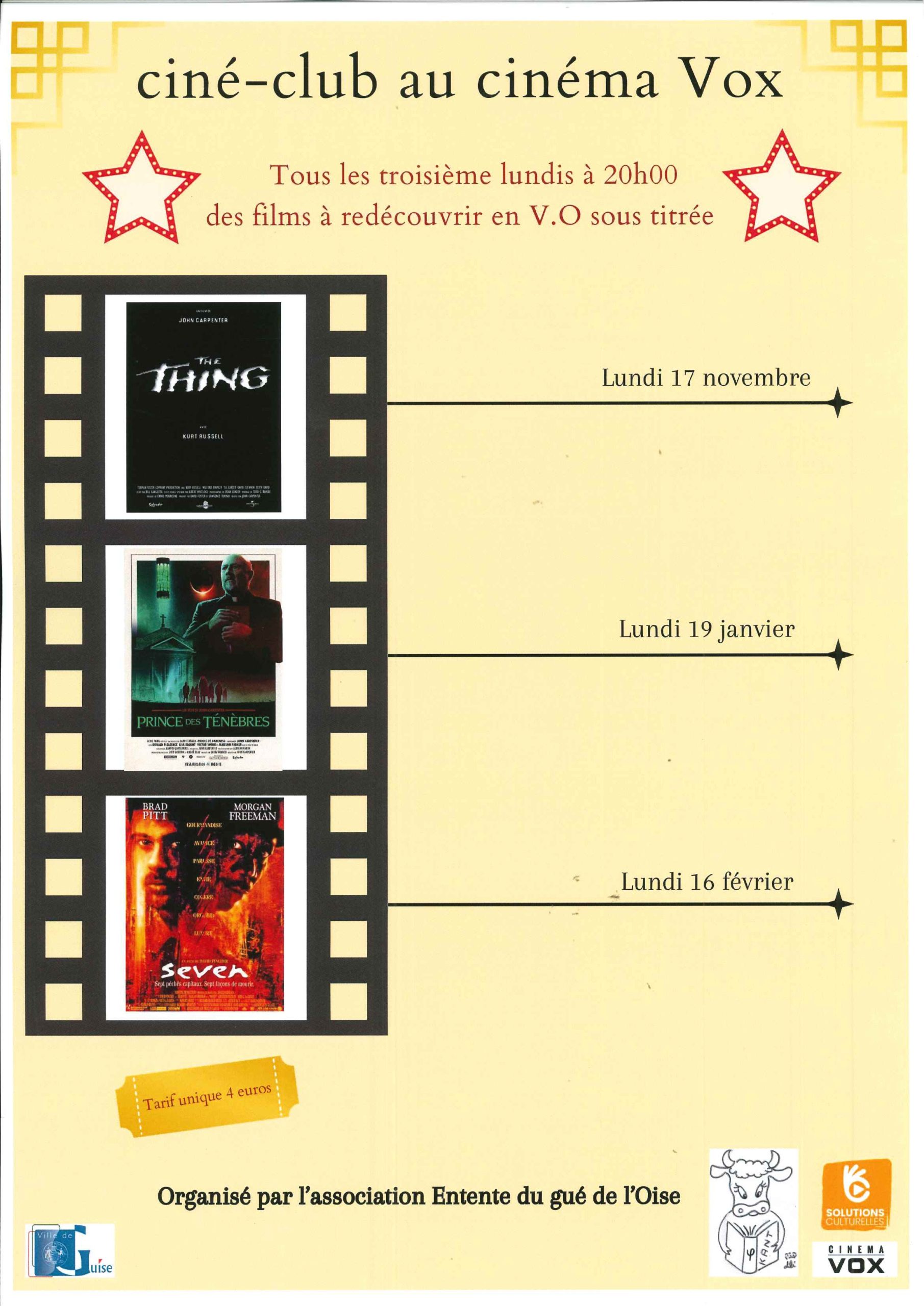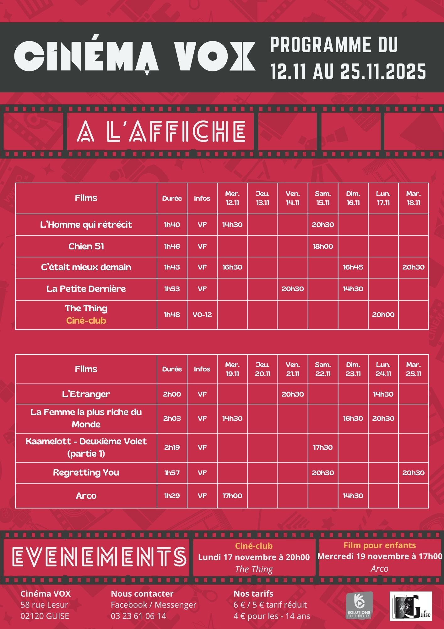 Voir l'image agrandie Cinéma – Ciné club au Vox, tous les troisièmes lundis du moisPar ana2608|2025-11-13T09:37:39+01:0013 novembre 2025|Cinéma|0 commentaireShare This Story, Choose Your Platform!FacebookTwitterRedditLinkedInTumblrPinterestVkEmail À propos de l'auteur : ana2608 Articles similaires Cinéma – Programme du 12 au 25 novembre 2025 Galerie Cinéma – Programme du 12 au 25 novembre 2025 Cinéma – Ciné échange, vendredi 28 novembre 2025 Galerie Cinéma – Ciné échange, vendredi 28 novembre 2025 Cinéma – Programme du 29 octobre au 11 novembre 2025 Galerie Cinéma – Programme du 29 octobre au 11 novembre 2025 Cinéma – « Chien 51 », mercredi 05 novembre 2025 Galerie Cinéma – « Chien 51 », mercredi 05 novembre 2025 Cinéma – Programme du 15 au 28 octobre 2025 Galerie Cinéma – Programme du 15 au 28 octobre 2025