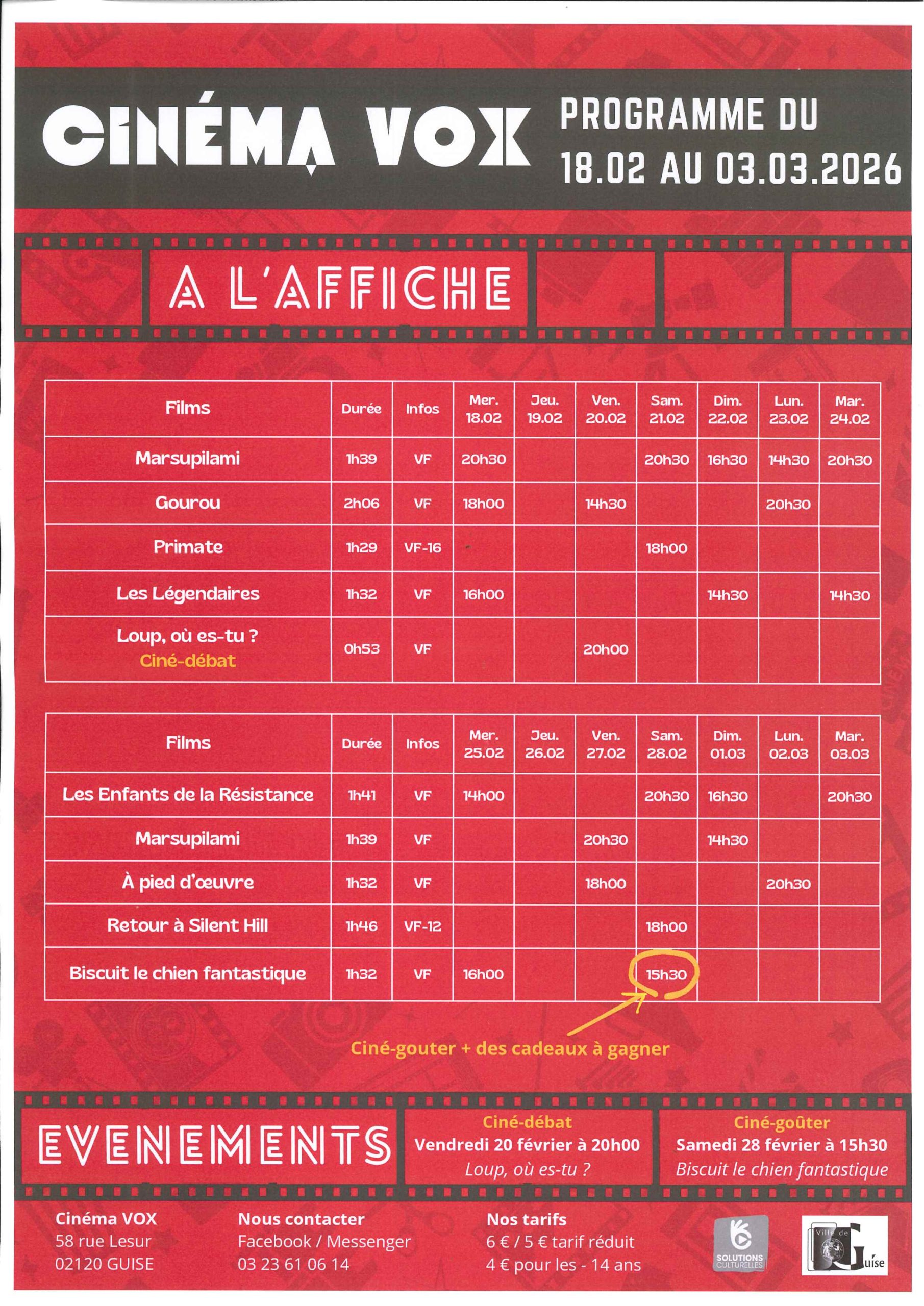 • Cinéma – Programme du 21 janvier au 03 février 2026