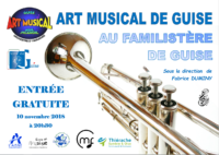 ![]() Le Concert de Gala Annuel de l'Orchestre d'Harmonie L'Art Musical de Guise, qui vient d'être classé en Division Supérieur lors du Concours National de Musique de Fourmies le 1er juillet dernier, aura lieu le Samedi 10 Novembre prochain au Théâtre du Familistère de Guise, à partir de 20h30. Vous pourrez apprécier différentes œuvres pour Orchestre […] |