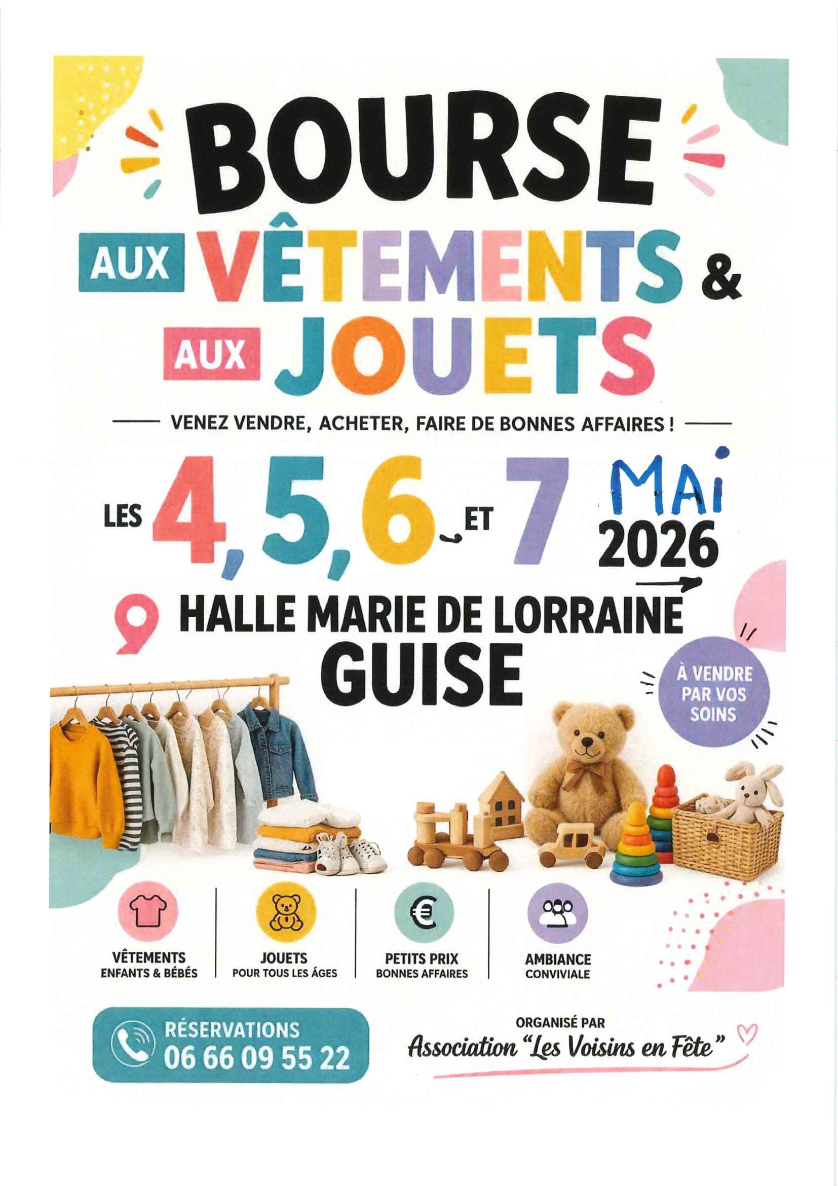 Association les voisins en fête – Bourse aux vêtements & aux jouets, 4,5,6 et 7 mai 2026