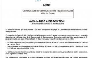 Avis de mise à disposition du 10 novembre au 10 décembre, convention du centre-bourg. Opération de revitalisation du centre-bourg et de développement du territoire. Les informations relatives à ce dossier peuvent être demandées auprès de [...]